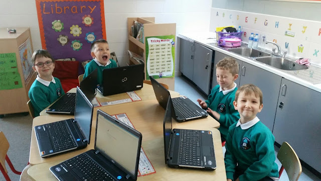 We started using laptops in 1st Class. We were so excited and had loads of fun playing phonics and language games.